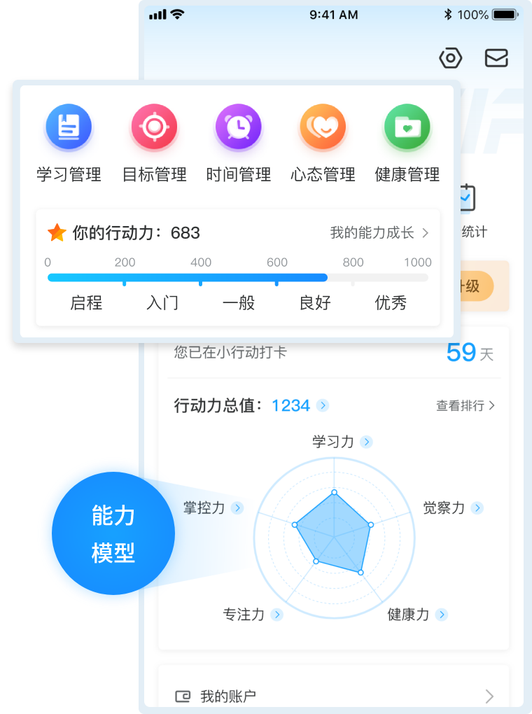 基于高效能人才5项管理能力模型,推荐能力提升解决方案,根据学习、践行打卡等针对性提升各个方面能力,提升员工执行力,让成长提升可视化。