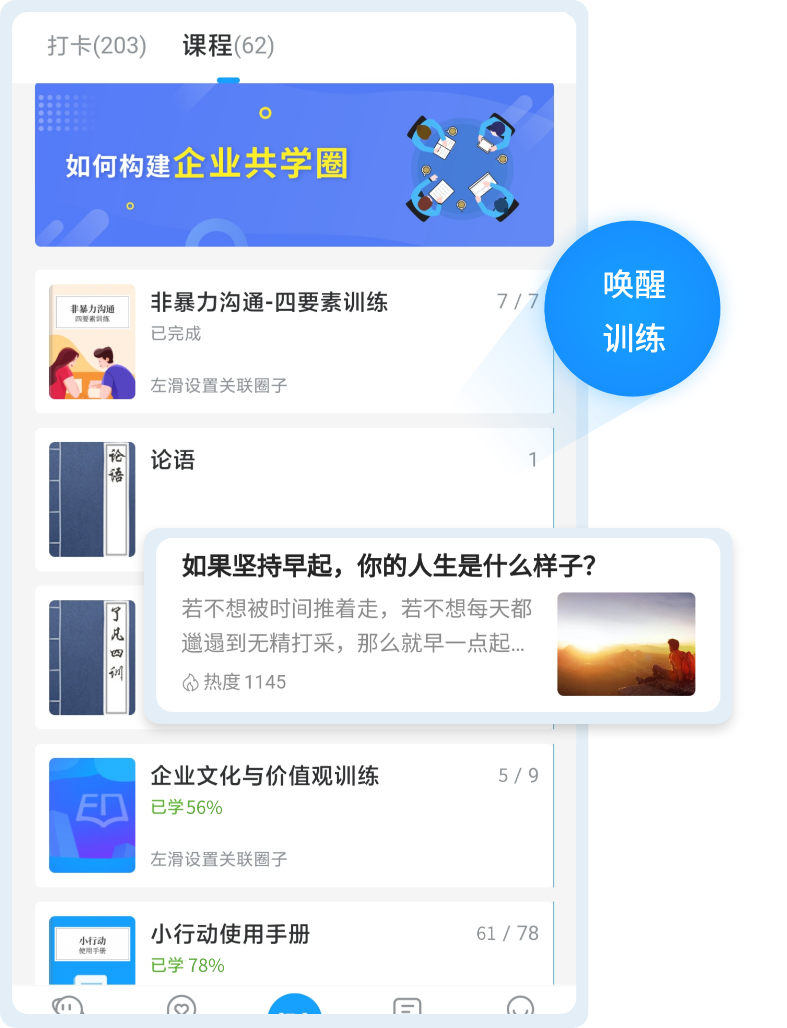 平台精选国学、哲学等经典文学内容,企业也可以设置为共学内容,方便员工直接学习。先人智慧弥足珍贵,利于帮助员工树立正确的人生观、价值观、世界观,做好心态管理。