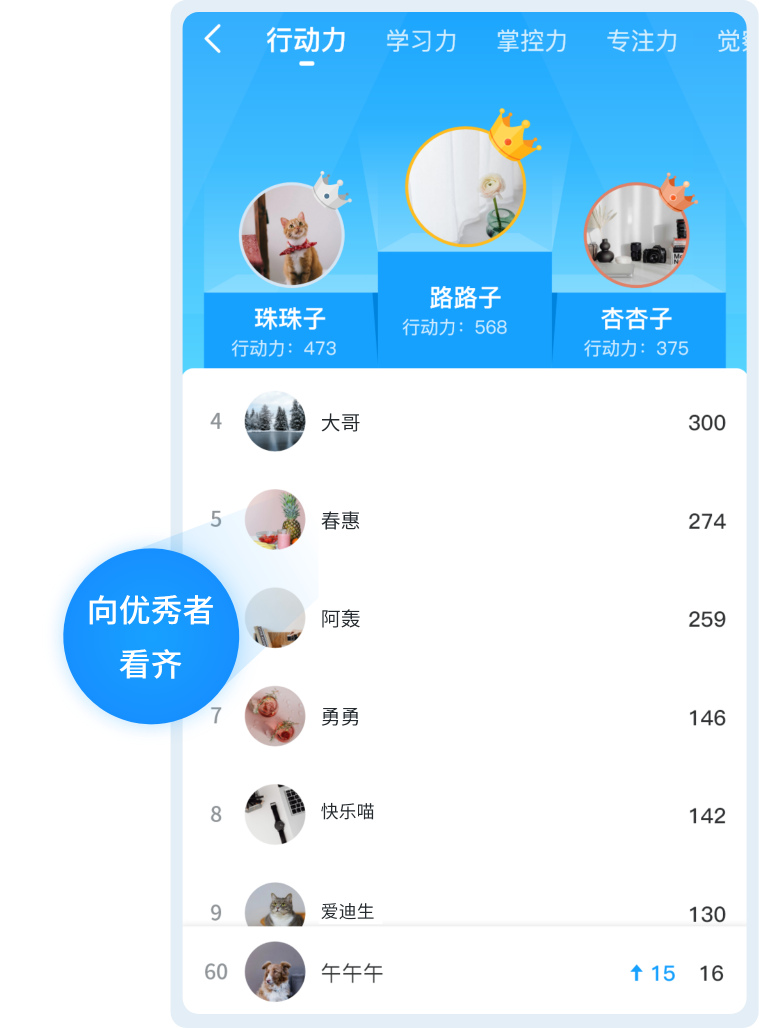 平台采取开放式的方式,设立榜样排行,员工可以看到同行或者其他行业员工的成长践行情况,增加员工的学习动力。也可以打造个人榜样IP,让他人跟随,增加成长成就感。